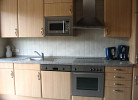 -offene Küche zum Wohn-/ Essbereich, augestattet mit Mikrowelle, Spülmaschine, Cerankochfeld, Kühl und Gefrierkombination