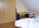 Im Obergeschoss erwarten Sie ein Badezimmer mit Badewanne, Dusche, WC, Waschbecken, Fußbodenheizung, des Weiteren gibt es ein Schlafzimmer mit Doppelbett (2x 0,90x2,00), Kinderreisebett, Schrank und Fernseher. Das zweite Schlafzimmer ist mit 2 Einzelbetten (0,90x2,00) , Kommode, Schrank ausgestattet. Im ausgebautem Dachgeschoss steht eine kostenlose Sauna und eine Relaxliege zur Verfügung. Rollläden (manuell).